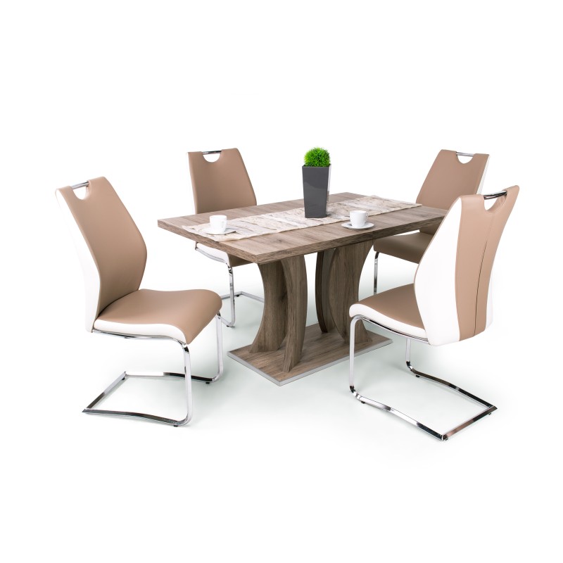 18-38 mm-es laminált bútorlap. A termék lapra szerelten csomagolva. Méretek: 130 cm hosszú( 40 cm-rel bővíthető), 85 cm széles, 74 cm magas.