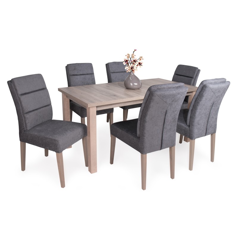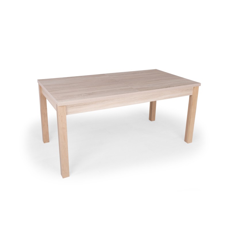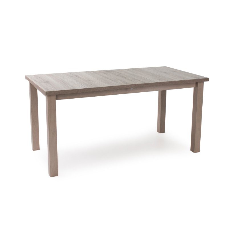 32 mm-es laminált MDF asztallap,festett él-pácolt lakkozott bükkfa láb. Méretek: 160 cm hosszú(40 cm-rel bővíthető), 80 cm széles,75 cm magas. Lapra szerelt.